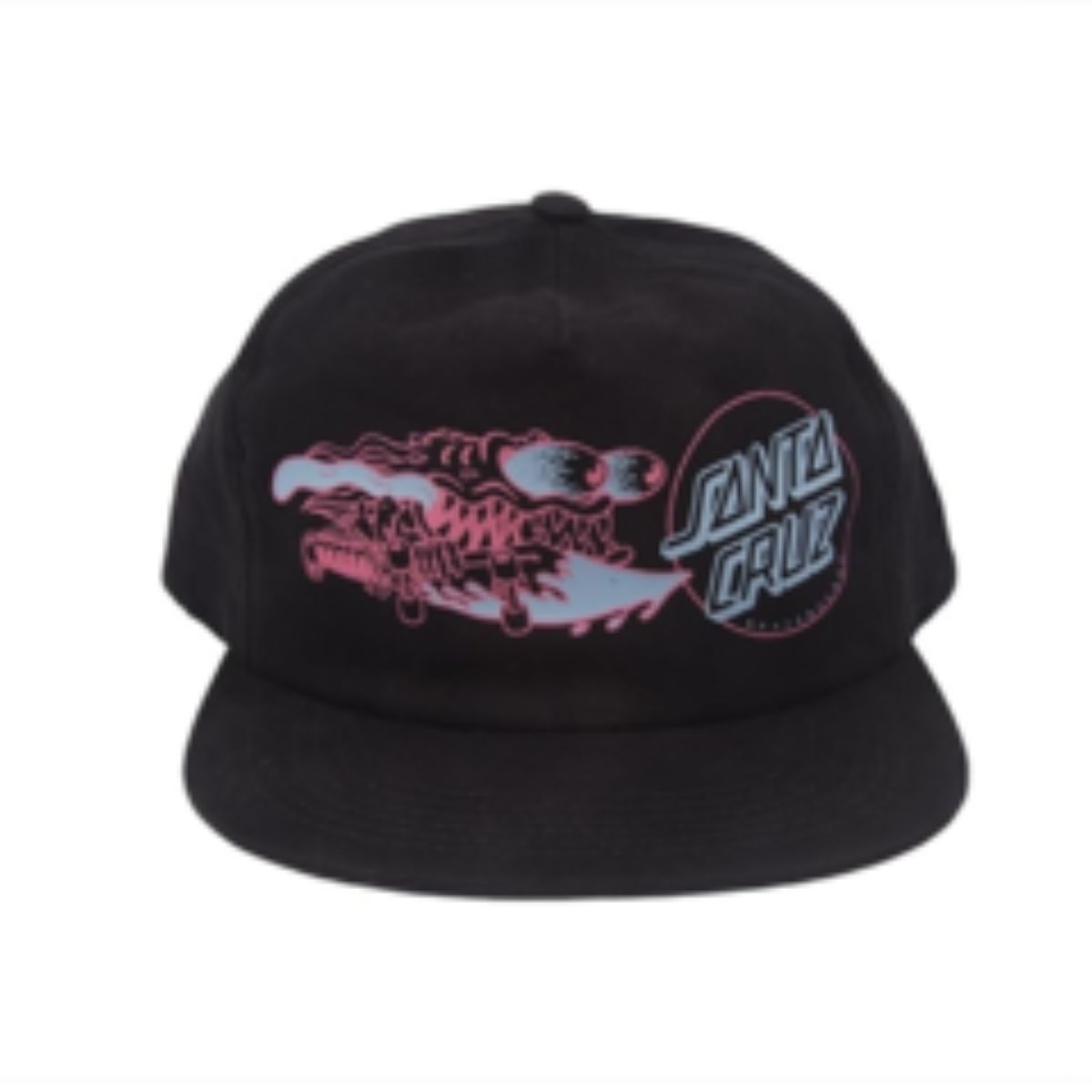 Boné Santa Cruz Slasher Flip Desconstruído Snapback, em sarja leve com telinha interna e aplicação frontal de silk.