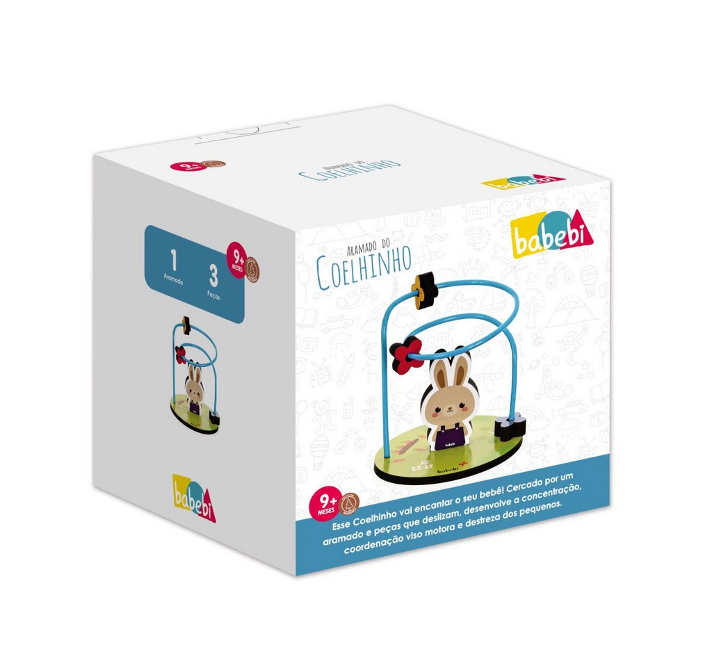 Esse coelhinho vai encantar o seu bebê! Cercado por um aramado e peças que deslizam, desenlvove a concentração coordenação viso motora e destreza dos pequenos.