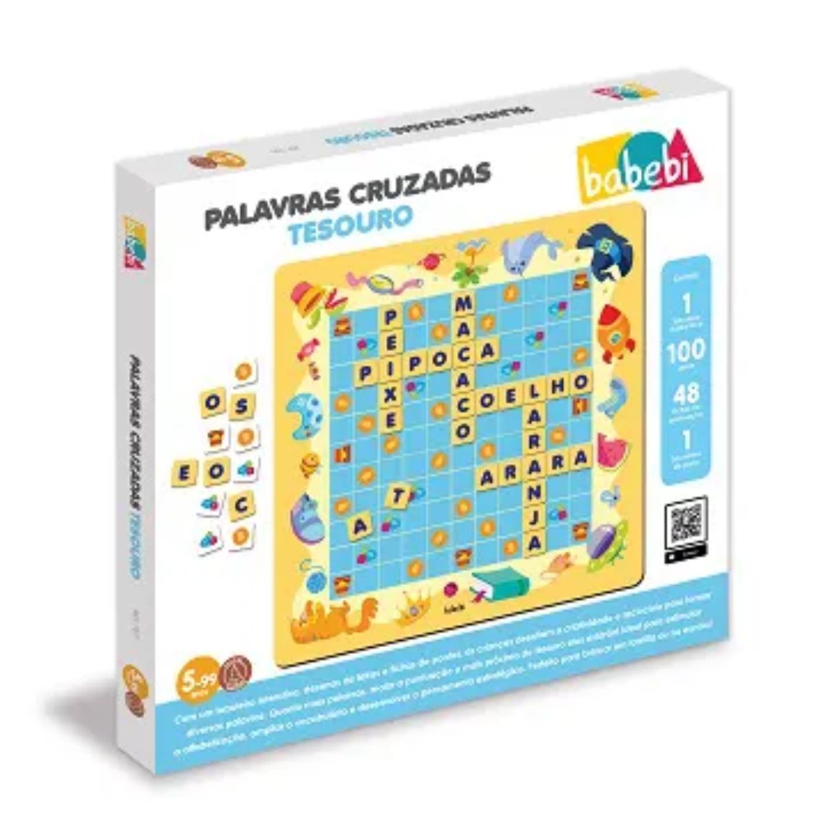O Palavras Cruzadas Tesouro – Babebi é um jogo educativo completo, que une o clássico das palavras cruzadas com uma abordagem lúdica e moderna. Produzido em madeira reflorestada e com um visual envolvente, o tabuleiro estimula a construção de palavras, o raciocínio estratégico e o vocabulário das crianças.