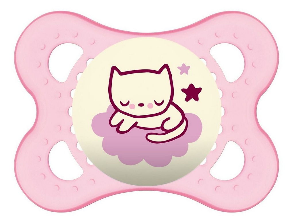 Chupeta Mam Night 0-6 Meses - Embalagem Unitária RosaMáximo conforto para a boca delicada do bebê com a Chupeta - Original Night - Bico de Silicone SkinSoft - +6 Meses - Gatinho - Rosa - MAM! Recomendado para bebês a partir de 6 meses, a Chupeta Original Night da MAM, possui bico de silicone SkinSoft, macio com superfície texturizada e sedosa. Seus furos de ventilação garantem maior conforto para os pequenos, não irritando a pele sensível do bebê. Além disso, pode ser facilmente encontrada de noite, pois seu botão brilha no escuro, facilitando a vida de mamães e papais.Recomendação: Recomendado para bebês a partir de 6 mesesProduto Certificado: CE-PUR/IQB 000265 NBR 10334/2003 – OCP 006Composição / Material: Silicone livre de BPAGarantia: 3 mesesPeso: Aproximadamente 50 gDimensões da embalagem: 12 x 10 x 12 cmMaterial: Silicone Livre de BPA