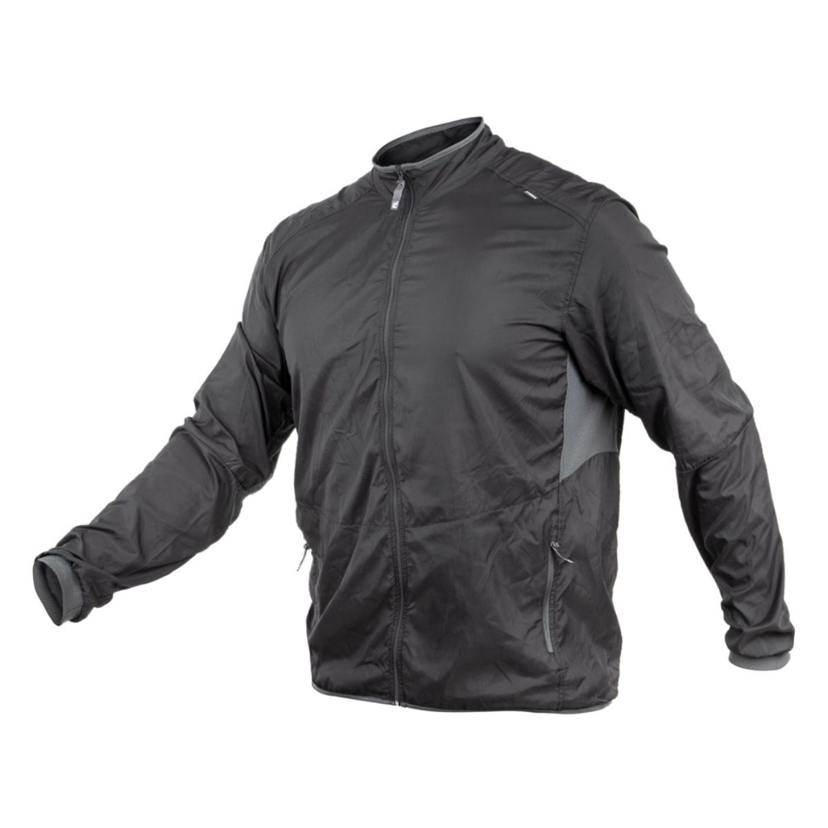 A jaqueta corta-vento Fluid masculina é confeccionada em Poliamida Microfibra, tecido repelente à água e ao vento. Possui gola alta com reforço de malha telada, punhos de malha para evitar a entrada de vento nos braços, elástico na barra, áreas de ventilação embaixo dos braços e nas costas, bolsos frontais com zíper, traseira mais comprida, abertura frontal com zíper destacável e fita refletiva nas costas para auxiliar a visualização em atividades noturnas. Possui também bolso traseiro, onde a jaqueta pode ser guardada, tornando-se compacta e de fácil transporte.