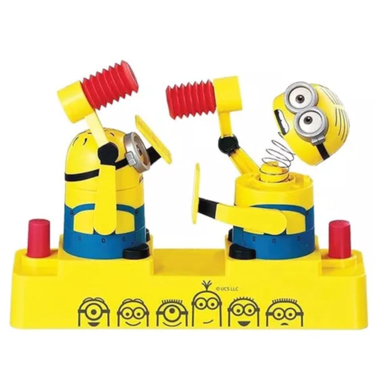 O Minions Hammer Pop é um jogo divertido para verdadeiros fãs dos Minions. Pressione habilmente o botão vermelho tantas vezes seguidas para acertar a cabeça do adversário com o martelo no momento certo. Se a cabeça do seu Minion pular, você perde. O escudo é considerado uma defesa e pode ser usado especificamente. Adequado para 2 jogadores. Para crianças a partir de 4 anos.