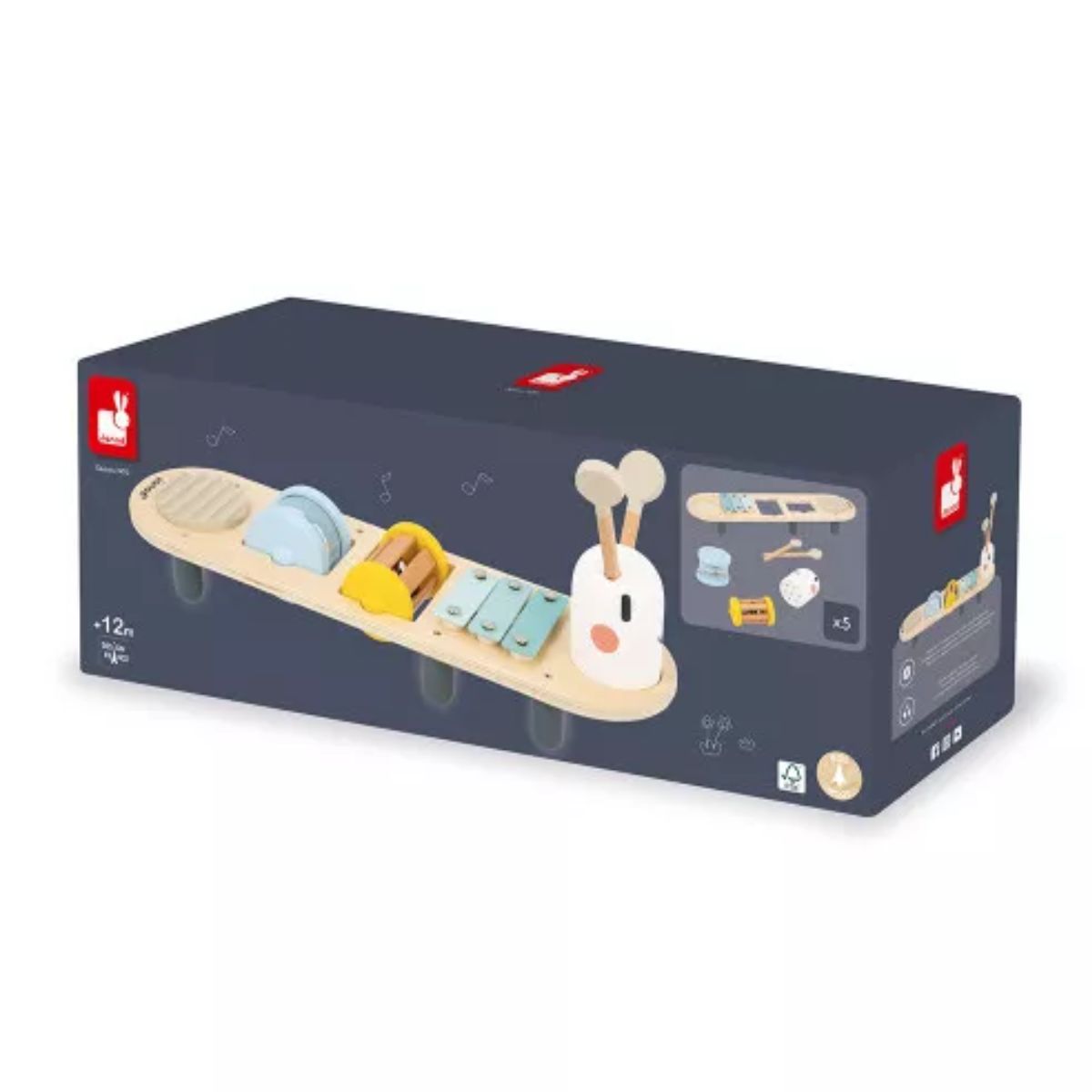 Esta lagarta colorida não é apenas adorável, ela também é uma banda de um homem só! Com 5 atividades sonoras integradas, seu filho pode explorar e criar sua própria sinfonia. Há uma maraca para dar ritmo, um xilofone para tocar melodias, um sino para dar um toque de doçura, um bastão de chuva para imitar o som suave da chuva e um raspador para uma textura sonora única.