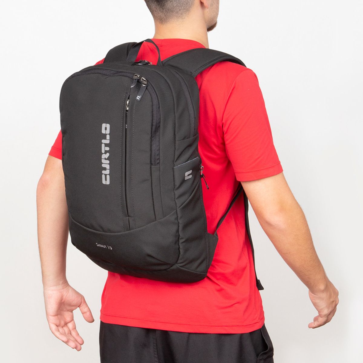 Mochila de 19L confeccionada em tecido poliéster com algodão com tratamento para resistência à água.