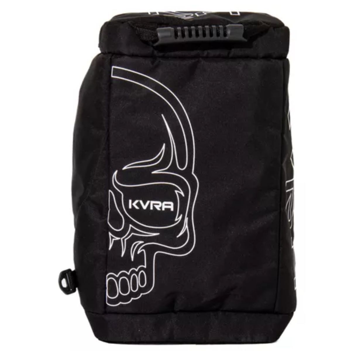 Detalhe: alças reguladoras, bolsos laterais e alça no bolso de cima com protetor plástico.