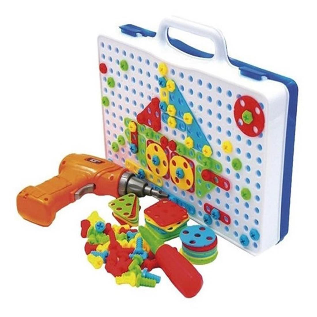 Um brinquedo divertido e inovador, que estimula a criação de cenários novos, com peças dinâmicas e multifuncionais, acompanha uma maleta para guardar o brinquedo após a brincadeira e uma parafusadeira mecânica.