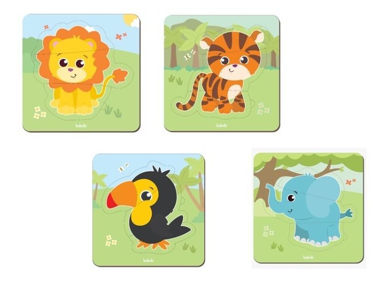 Um dos brinquedos educativos mais buscados pelas famílias são os quebra-cabeças! Os pequenos de 1 ano agora também podem brincar! Esse kit quebra cabeça infantil é composto por 4 quebra-cabeças de 3 peças grandes cada para formar um lindo leão, elefante, tucano e tigre!