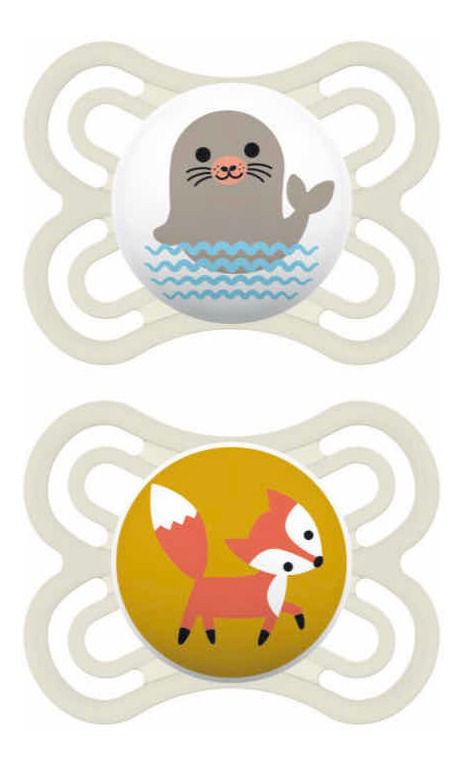 Kit 2 Chupetas Mam Perfect (0-6m) Neutra 2973 Foca e Raposa