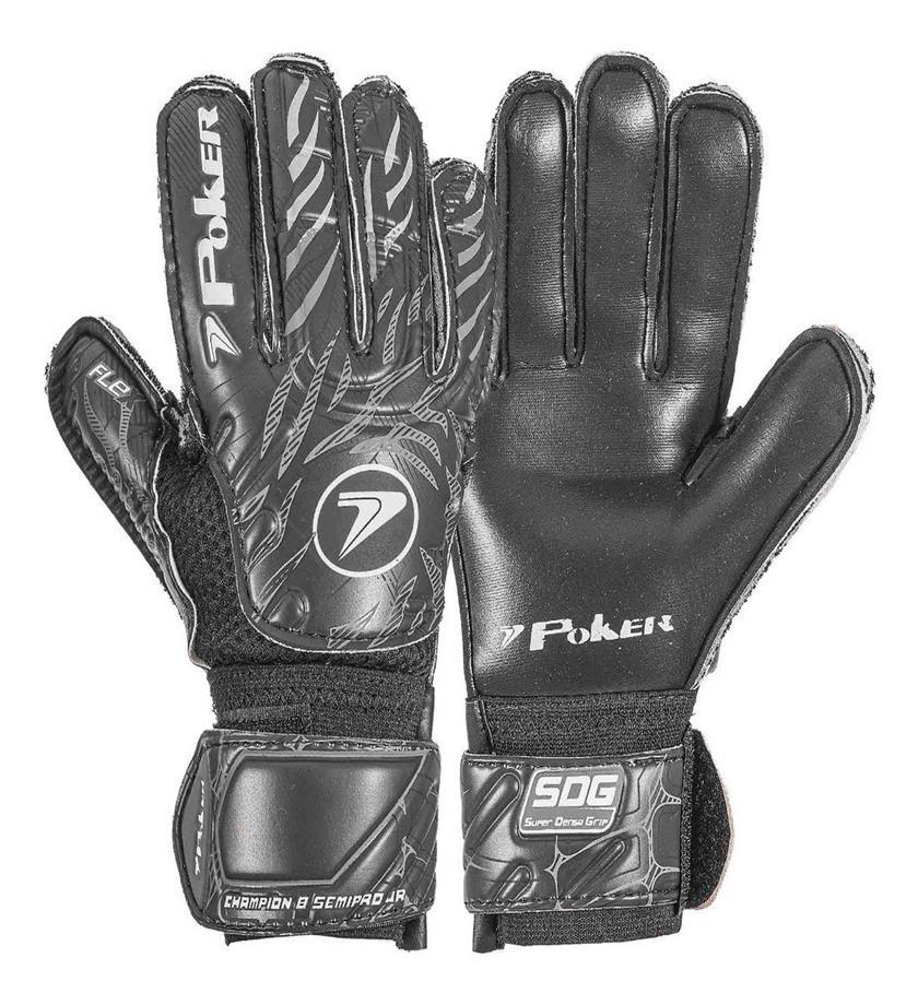 Luva Poker Semi Profissional para Futebol de Campo Multiterreno Champion 8 Junior - Tamanho 05 - Cor Preta