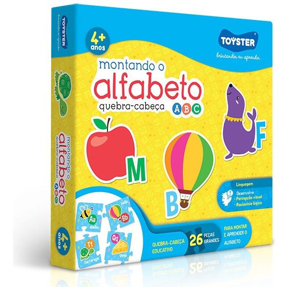 Este quebra-cabeça é composto por 26 peças com as letras do alfabeto.Brincando de montar o quebra-cabeça, a criança aprende a ordem alfabética e a reconhecer as letras do alfabeto enquanto se diverte.