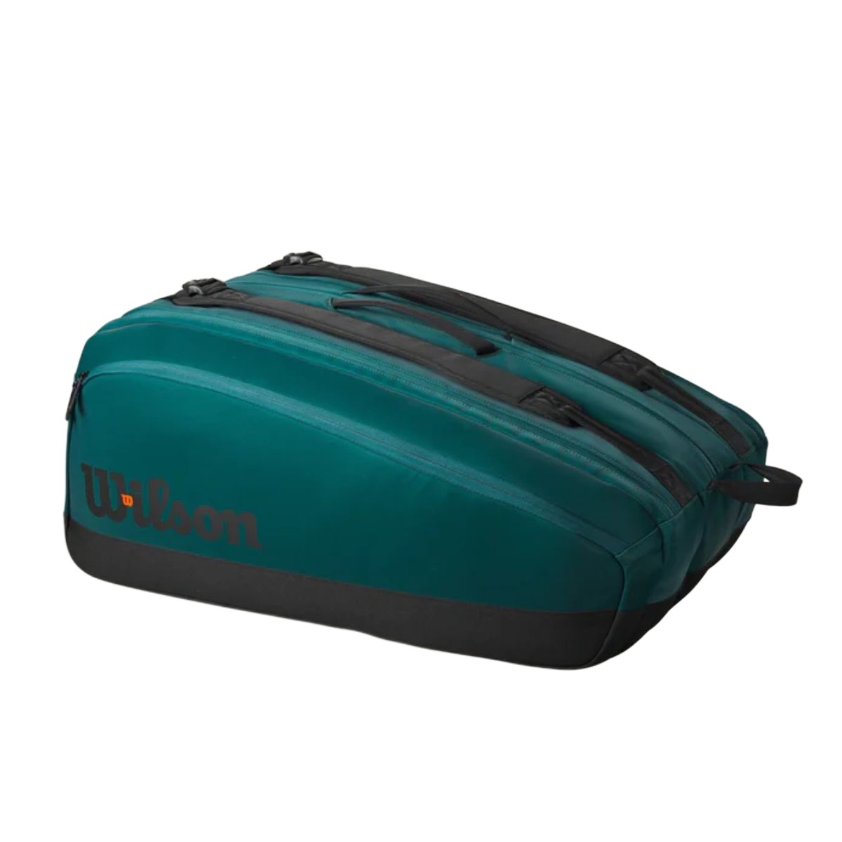 A Blade Super Tour 15 Pack é inspirada no design elegante e dinâmico da raquete Blade V9 e apresenta a mesma cor verde esmeralda. O bolso de raquetes multifuncional é o companheiro definitivo para jogadores de tênis ávidos e treinadores, comportando até 15 raquetes, equipamentos, roupas e outros itens essenciais. Possui três compartimentos principais, sendo dois revestidos com material termo protetor para proteger contra mudanças de temperatura. Há um compartimento ventilado para sapatos e bolsos extras nas laterais para armazenamento adicional. Equipado com alças de transporte duráveis e alças de ombro ajustáveis para facilitar o transporte ao viajar de e para torneios.
