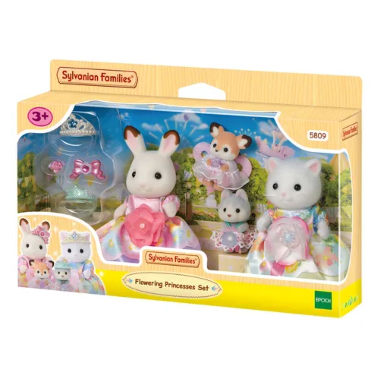 Este conjunto contém 4 miniaturas: a menina Coelho Chocolate, a menina Gato Persa, o bebê Husky e o bebê Cervo. Elas usam vestidos florais exclusivos e cada uma tem seu próprio acessório de princesa. Cada miniatura é articulada e cuidadosamente vestida. Suas roupas podem ser retiradas e recolocadas à vontade.