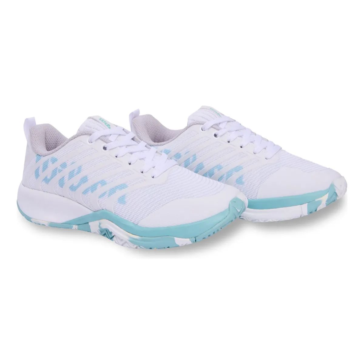 O modelo conta com reforços em poliuretano no calcanhar e na lateral, aumentando a estabilidade durante deslocamentos rápidos. A entressola em EVA de alta performance garante excelente amortecimento e retorno de energia, enquanto o solado de borracha All Court oferece tração e aderência em diferentes tipos de quadra.